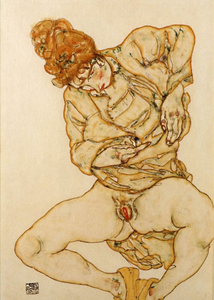 Egon Schiele. Half nude reclining woman with legs apart 1916