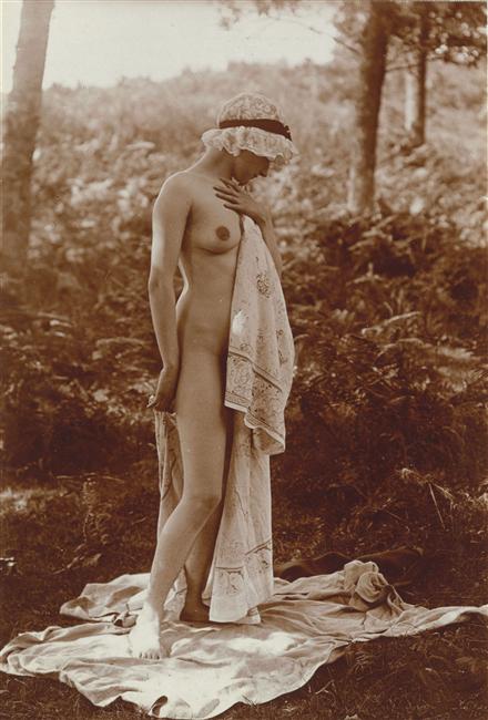 Charles Augustin Lhermitte. Jeune femme posant nue dans une clairière 1912.