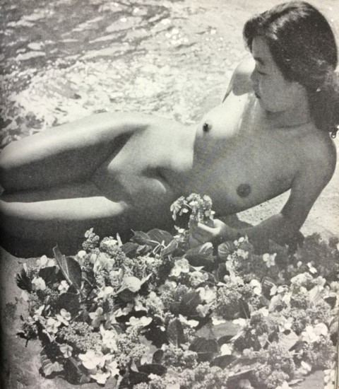 Kira Sugiyama. Nu dans la mer et fleurs 1951